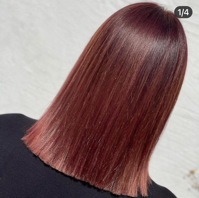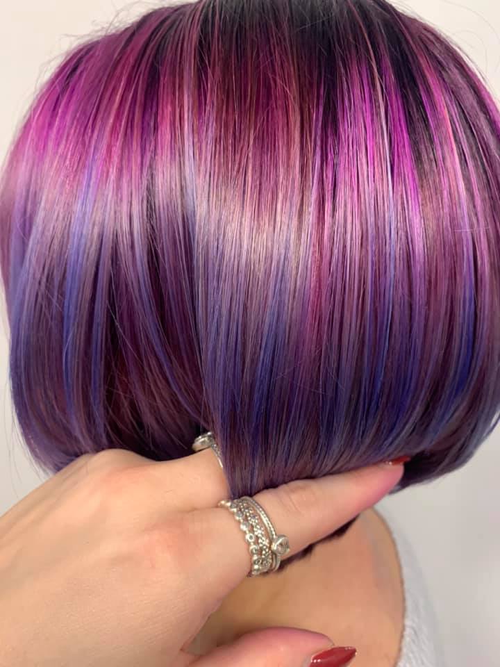 This clean-cut bob is giving major glam vibes — coloured from bold purple roots to a dreamy rose gold blend through the ends ๐๐ธ๐ซ